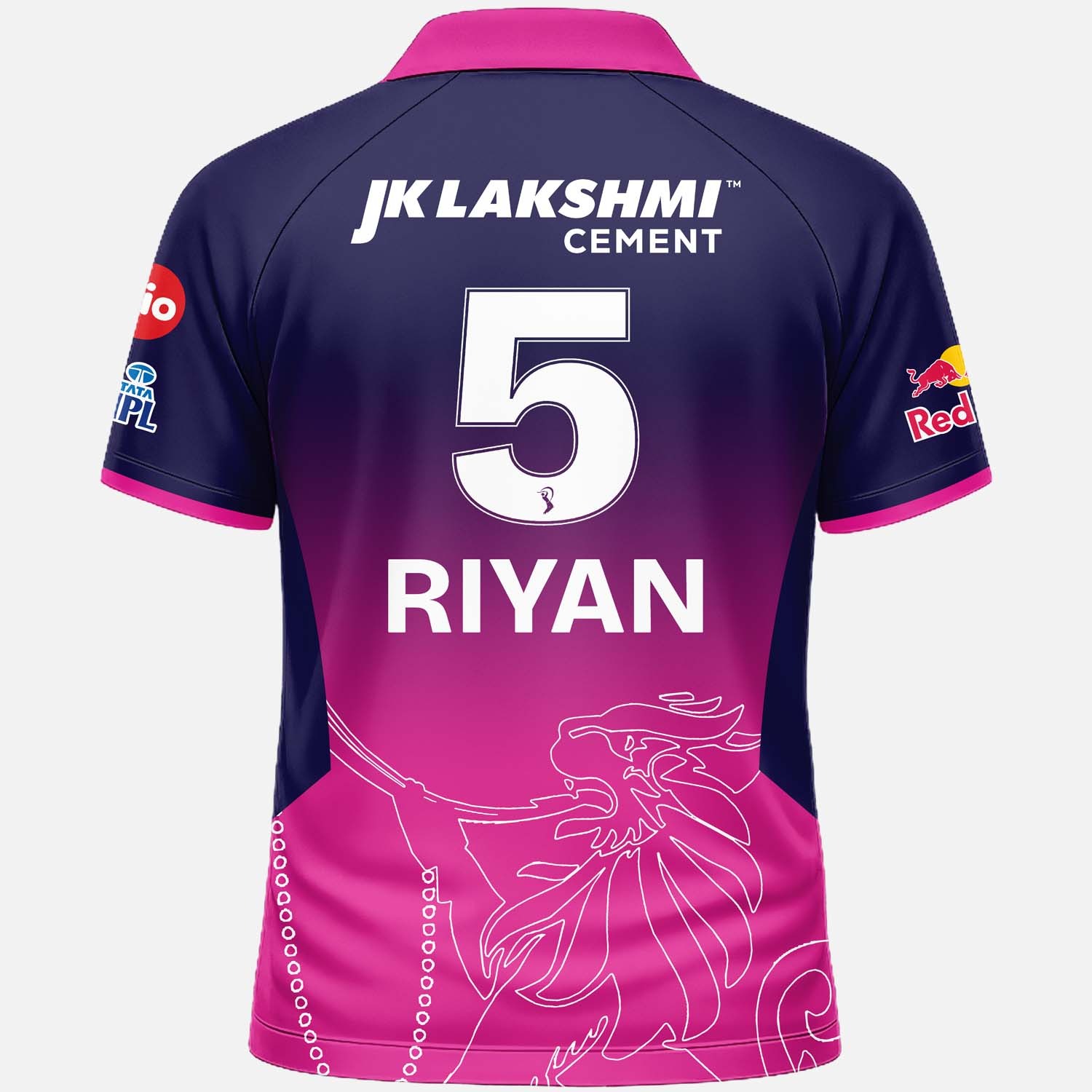 Custom Player Detailing: The back is pre-printed with “RIYAN 5” in a clean, modern font, celebrating the team’s captain and star all-rounder.