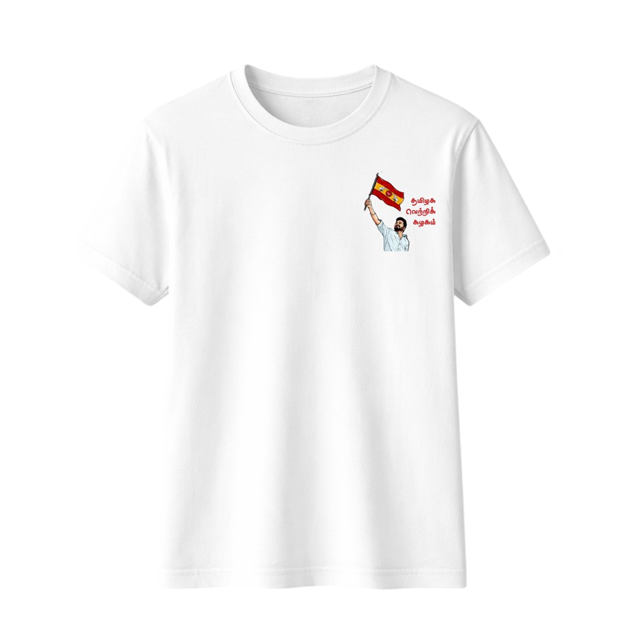 - Back Design: High-quality print featuring a powerful Vijay-inspired design with bold Tamil typography
